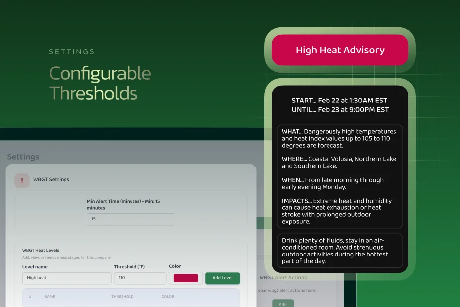 Administrators can configure multiple WBGT thresholds based on organizational policies, activity types, or environmental conditions. Thresholds are fully configurable and not limited to a fixed number.